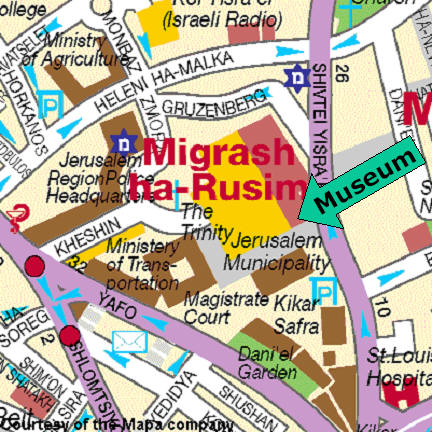 is on a side street, behind the Jerusalem Municipality, behind and around