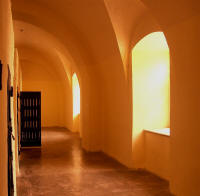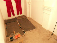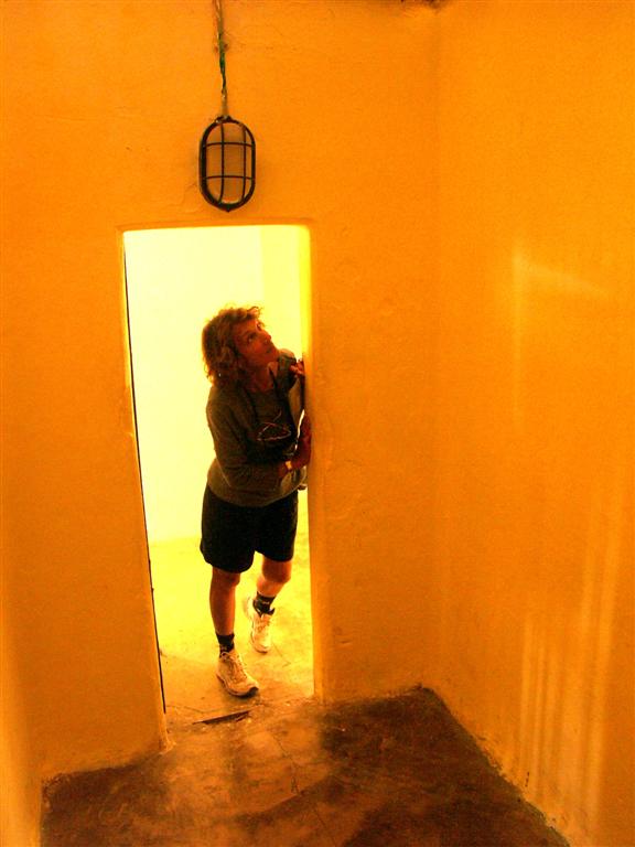 The Zinzana - isolation cells block. (Marlene inspecting one of the cells).